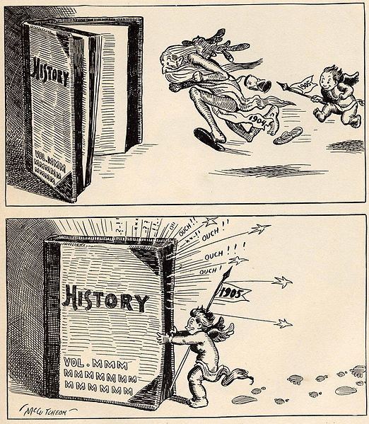 new year Next → In this cartoon by John T. McCutcheon, the Baby New Year of 1905 runs old 1904 off into history .